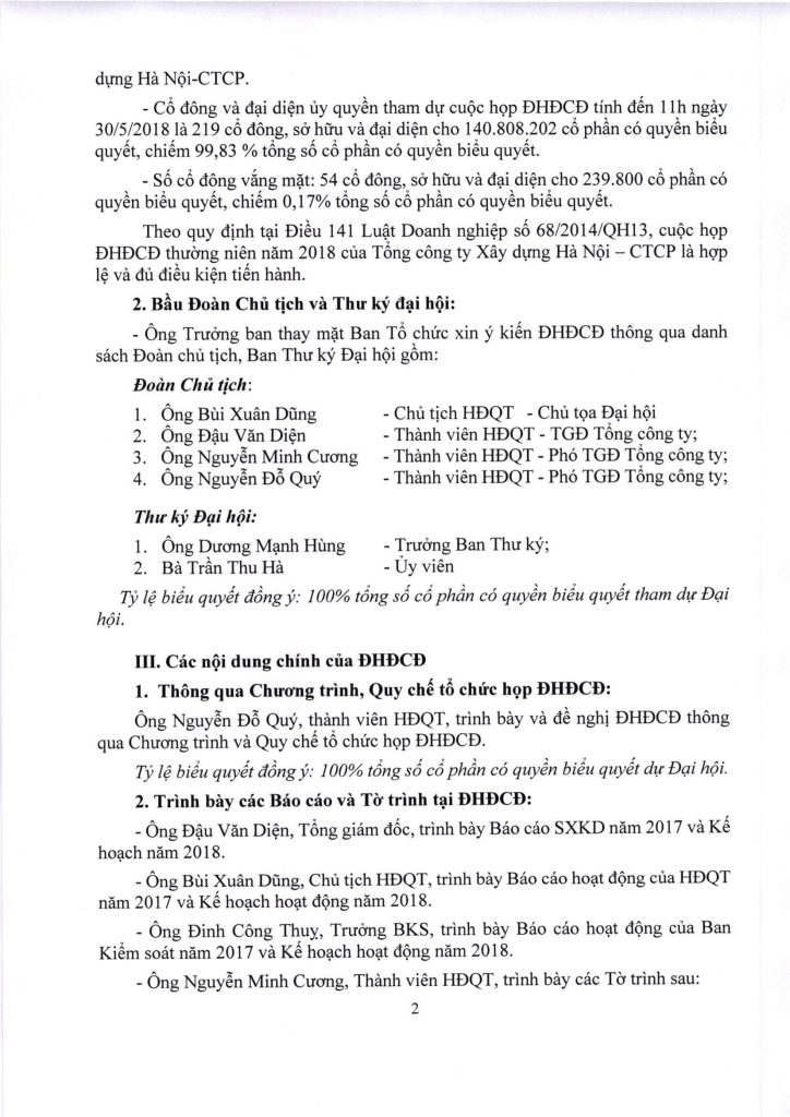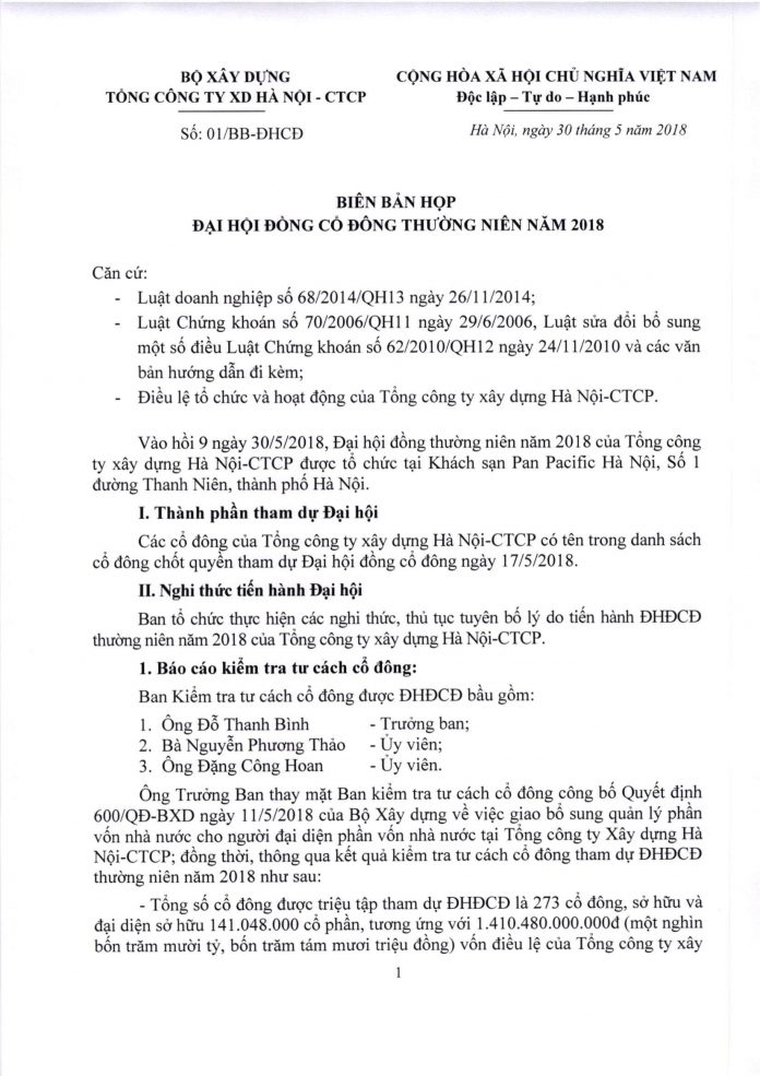 Nghị quyết đại hội đồng cổ đông thường niên năm 2018 của Tổng công ty Xây dựng Hà Nội – CTCP